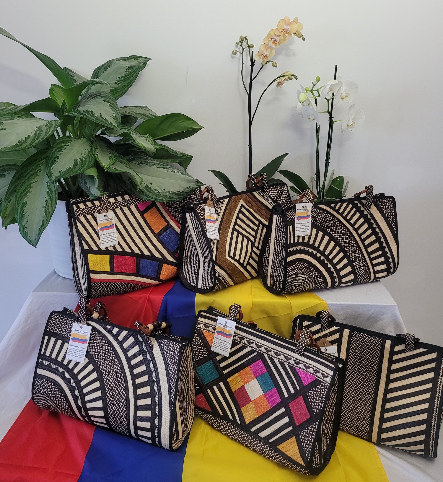 Hand crafted purses including hand painted sets with purse, clutch and hat.