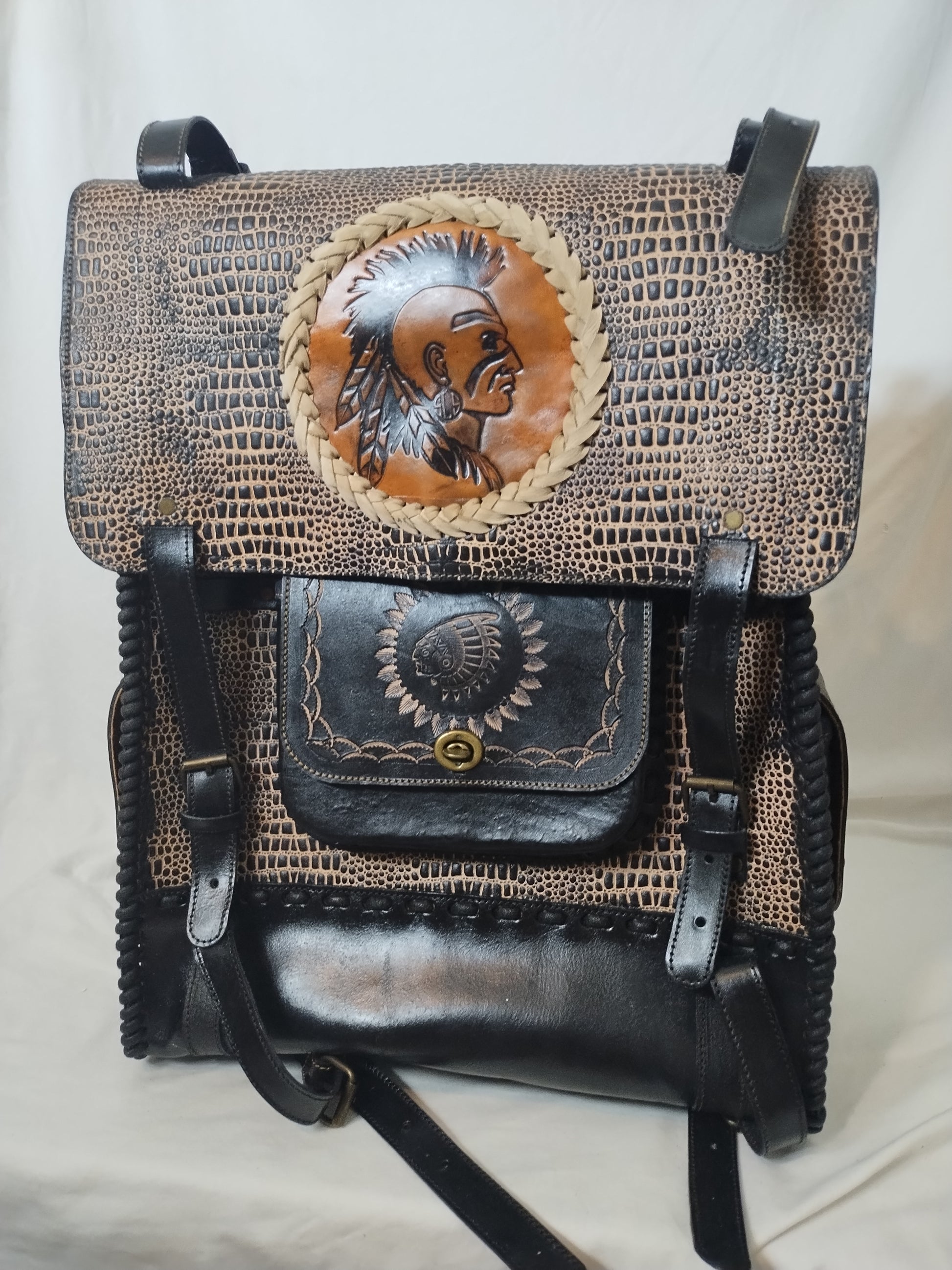 Leather backpack LARGE made by the indigenous people of Colombia.